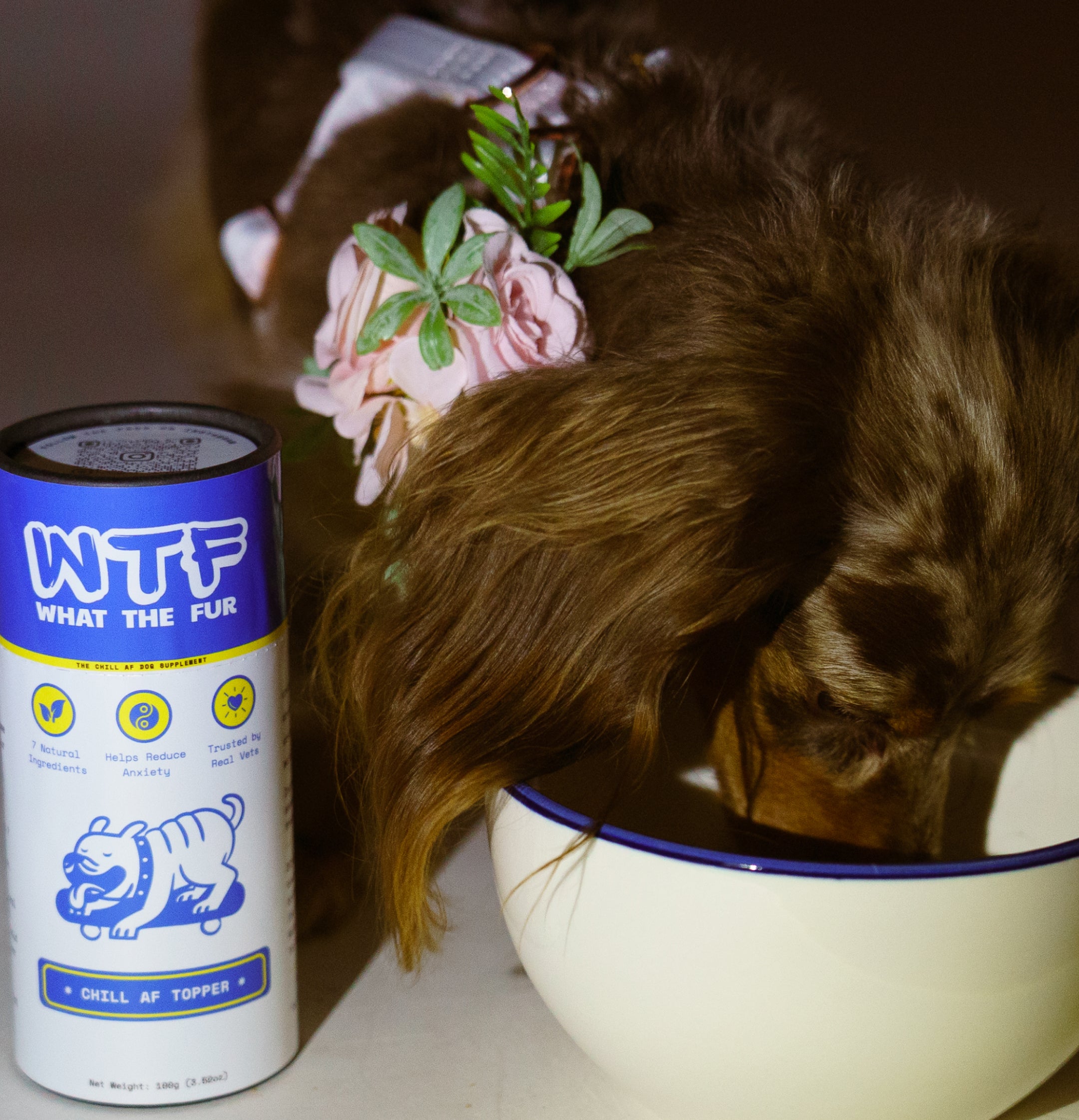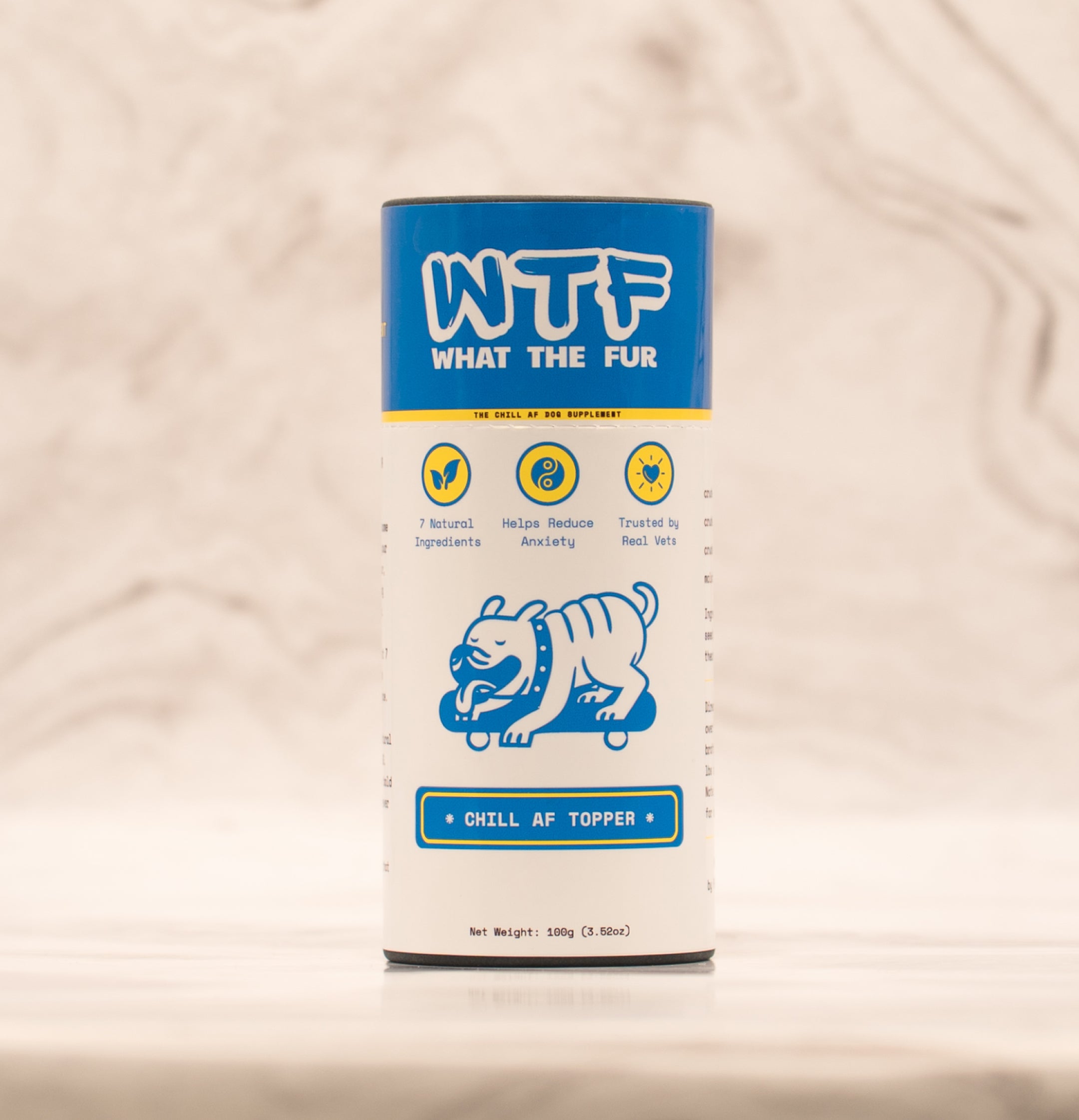 This is not a chill pill. It’s better. Chill AF is a high-protein, calming and anxiety relief topper made with real ingredients to help dogs take it down a notch. Just scoop, sprinkle, and watch the chaos fade.